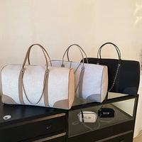 2025 Vintage büyük kapasiteli tuval seyahat çantası bagajı çanta açık moda kadın basit omuz çantası zinciri ile